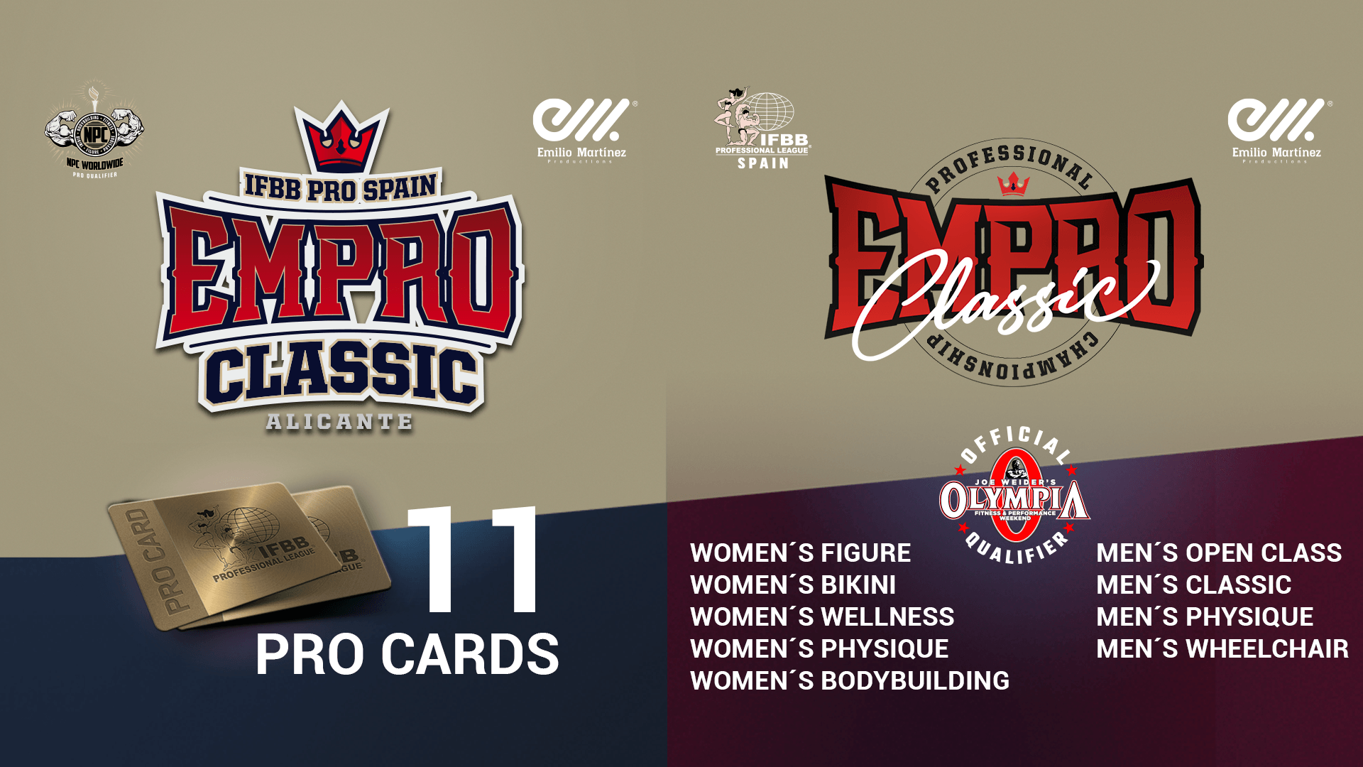 Emilio Martínez Productions is proud to announce the fourth edition of the EMPRO CLASSIC, which is considered the most important event of Fitness and Bodybuilding in Europe, since its founder Joe Weider started the legend in 1965. For second time, the Ben Weider series will be held in Alicante.
